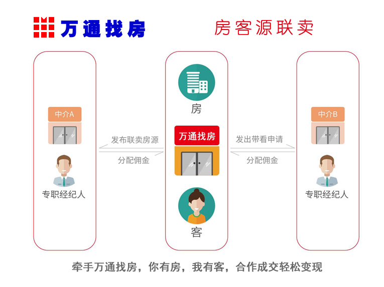加入到万通找房,有以上图示的四大任务,万通找房为每项工作单独设置了分佣,哪怕你做了其中的一项或多项,都可以分到相应的佣金,这样可以促进大家一起资源共享,相互合作,实现共赢,多赢。